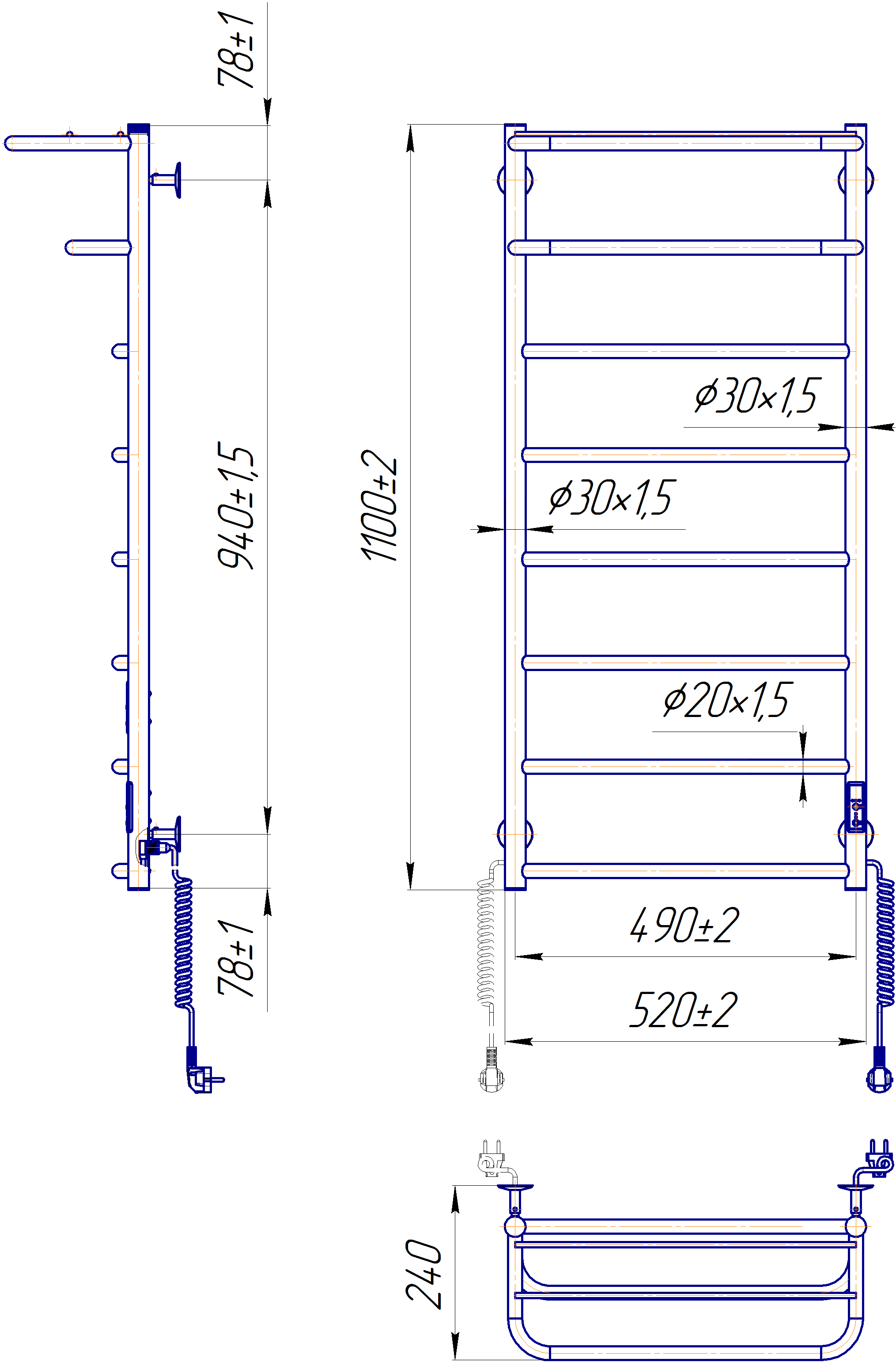 Габарити1100×520×240 мм