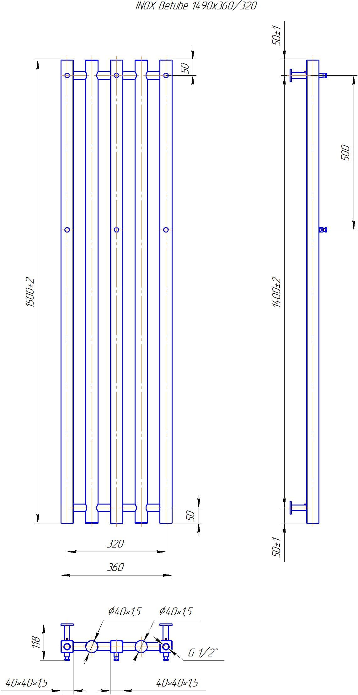 Водяна рушникосушарка INOX Бітуб 1490х360/320