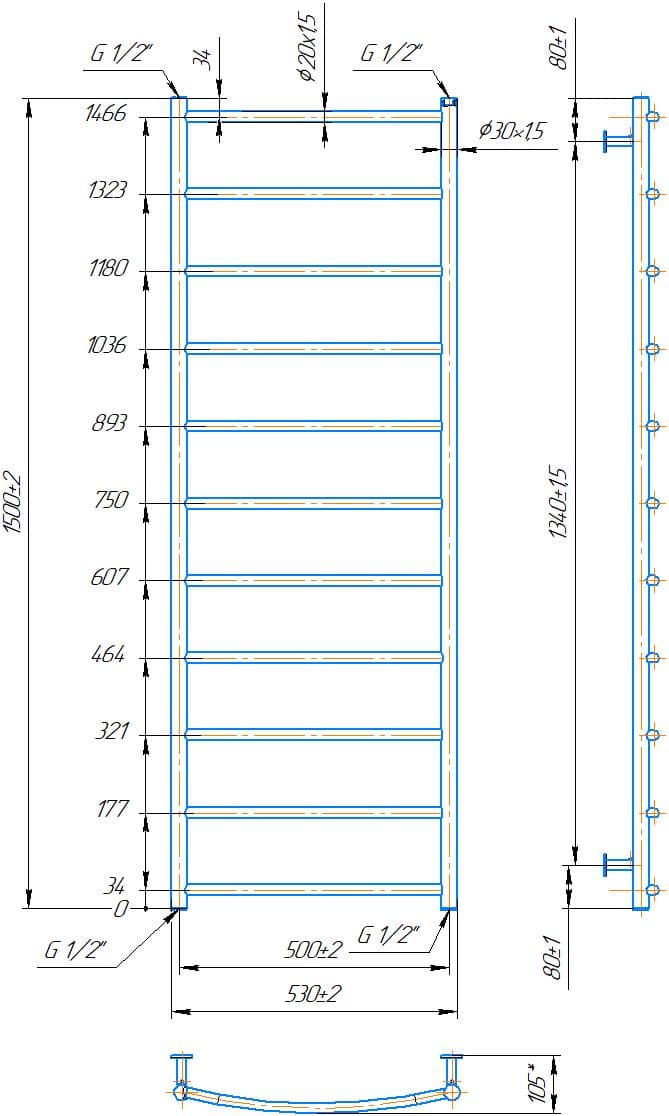 Водяна рушникосушарка INOX Класік HP 1500х530/500