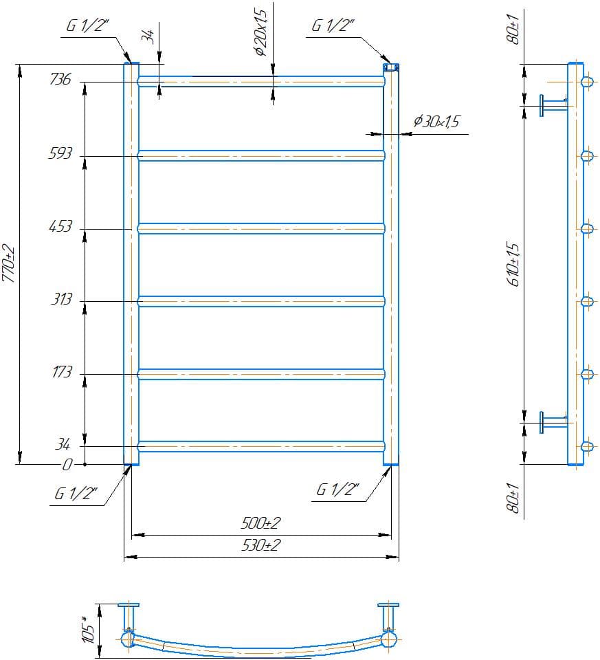 Водяна рушникосушарка INOX Класік HP 770х530/500