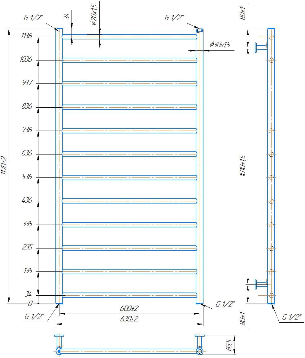 Водяна рушникосушарка INOX Флет 1170х630/600