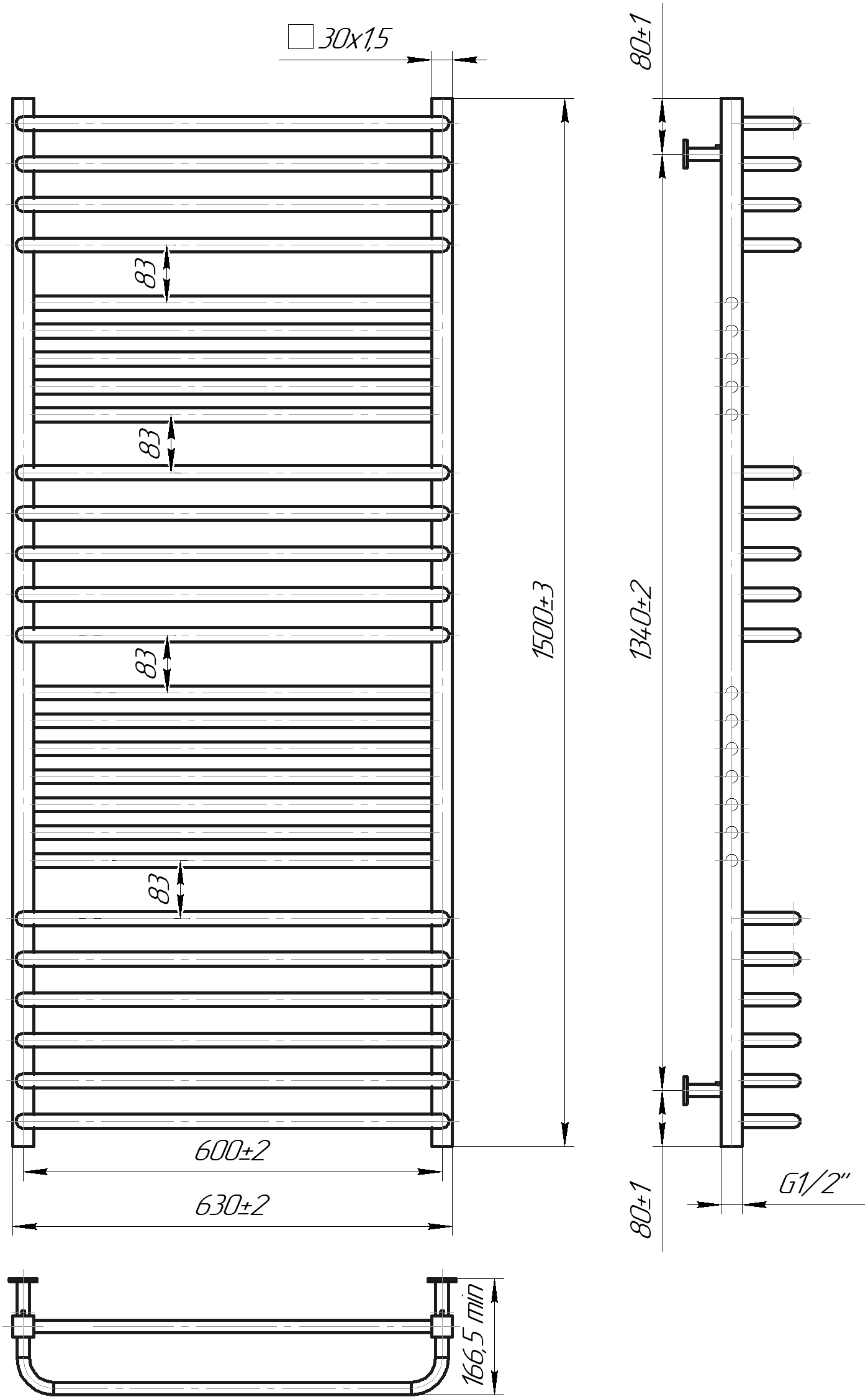 Водяна рушникосушарка INOX Гера-Люкс 1500х630/600