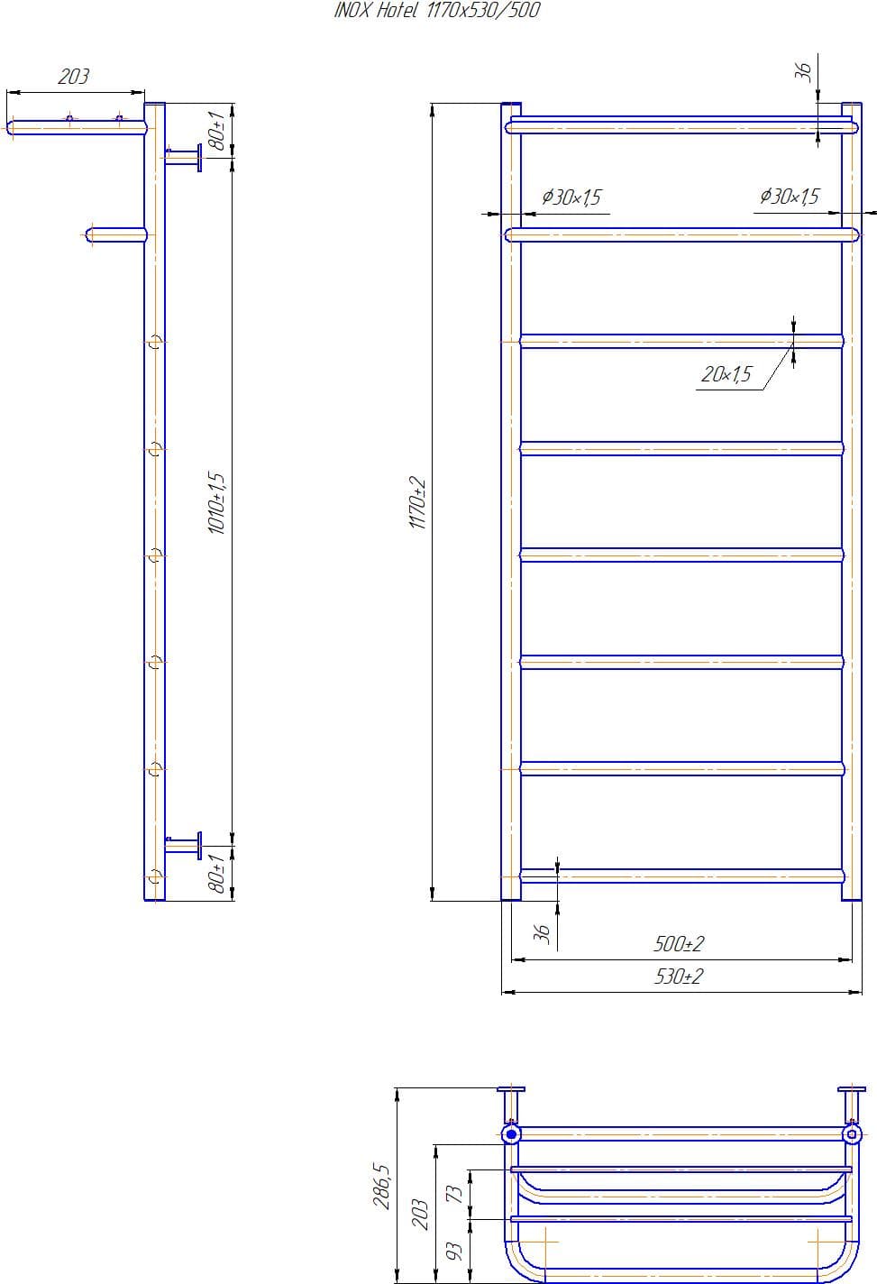 Водяна рушникосушарка INOX Готель 1170х530/500