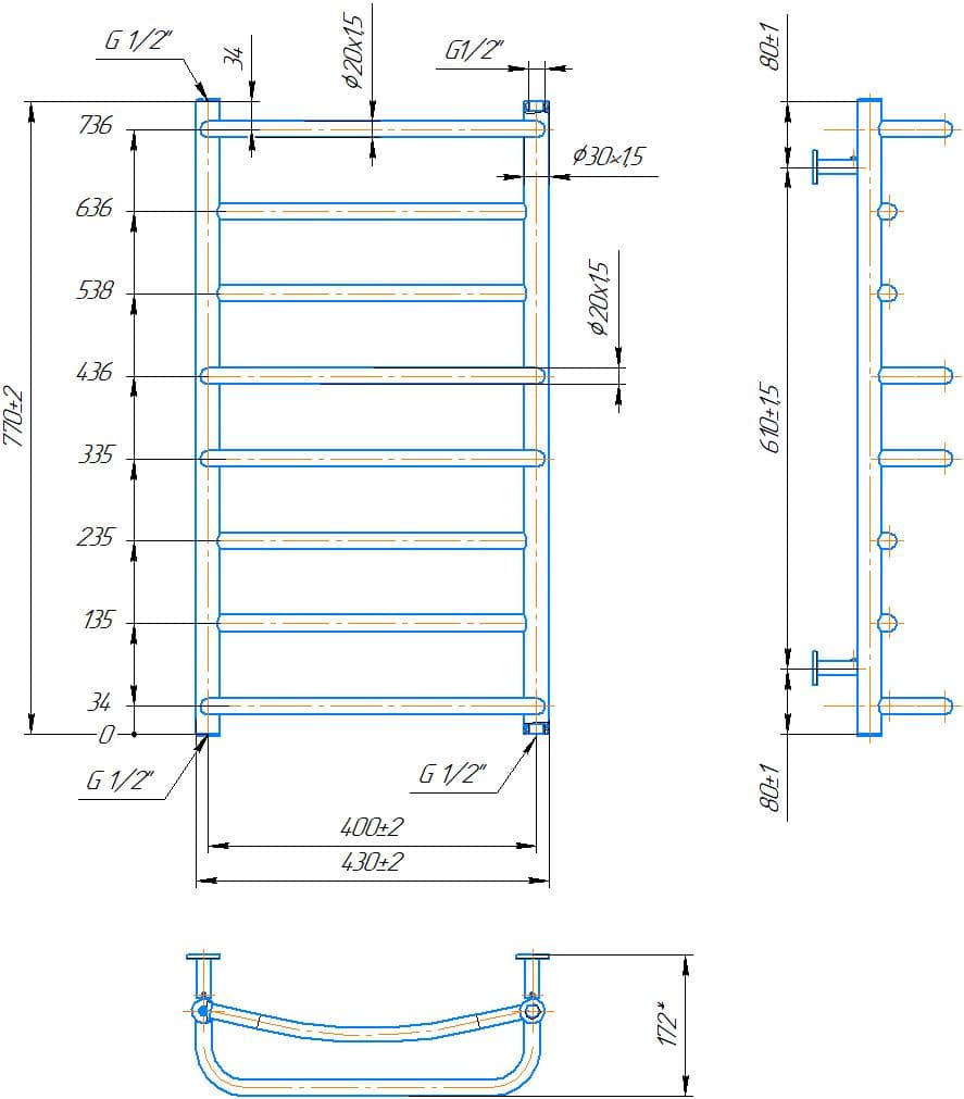 Водяна рушникосушарка INOX Люкс 770х430/400