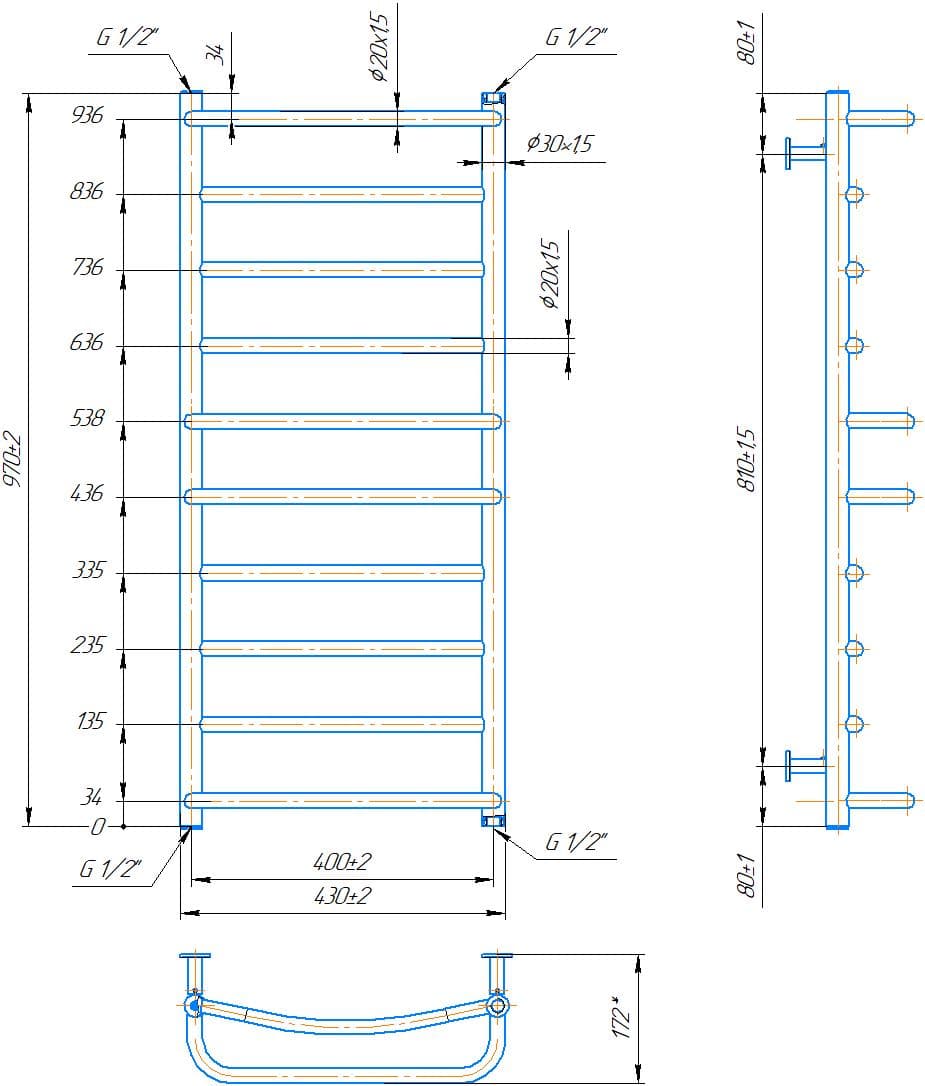 Водяна рушникосушарка INOX Люкс 970х430/400
