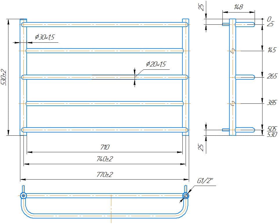 Водяна рушникосушарка INOX Люкс Сіті 430х770/740