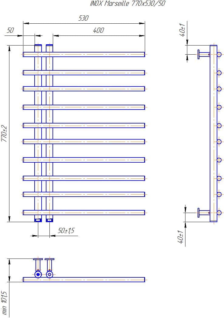Водяна рушникосушарка INOX Марсель 770х530/50