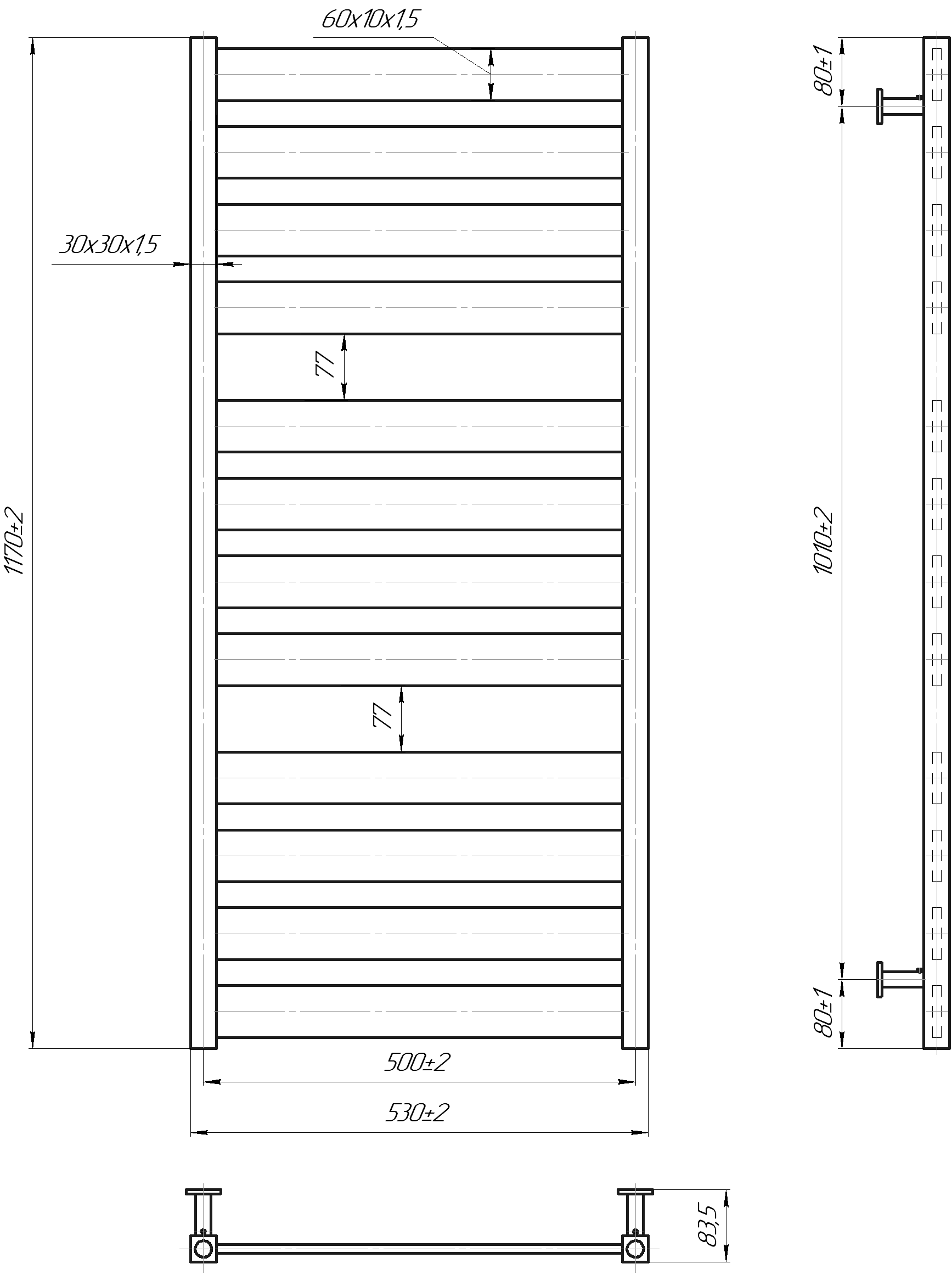 Габарити1170×530×170 мм