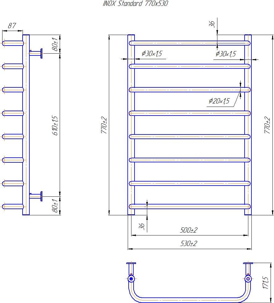 Водяна рушникосушарка INOX Стандарт 770х530/500
