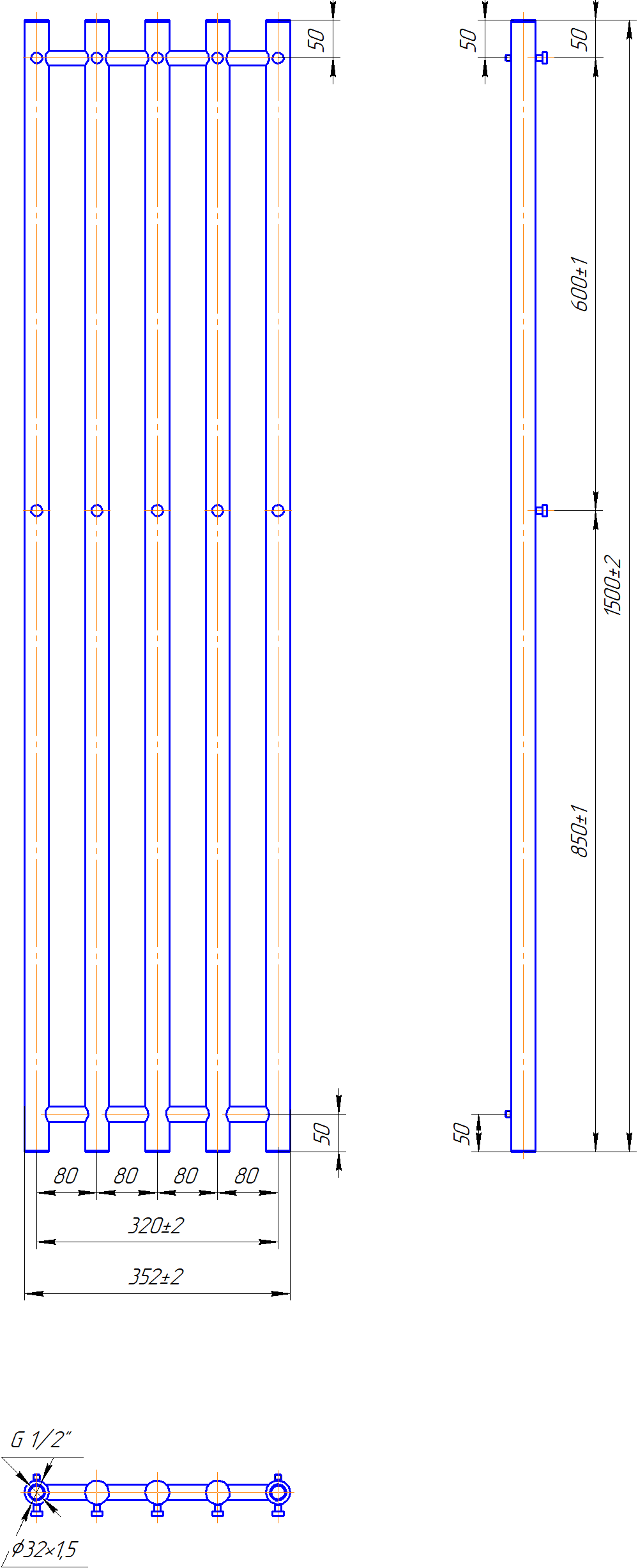 Габарити1500×350×80 мм