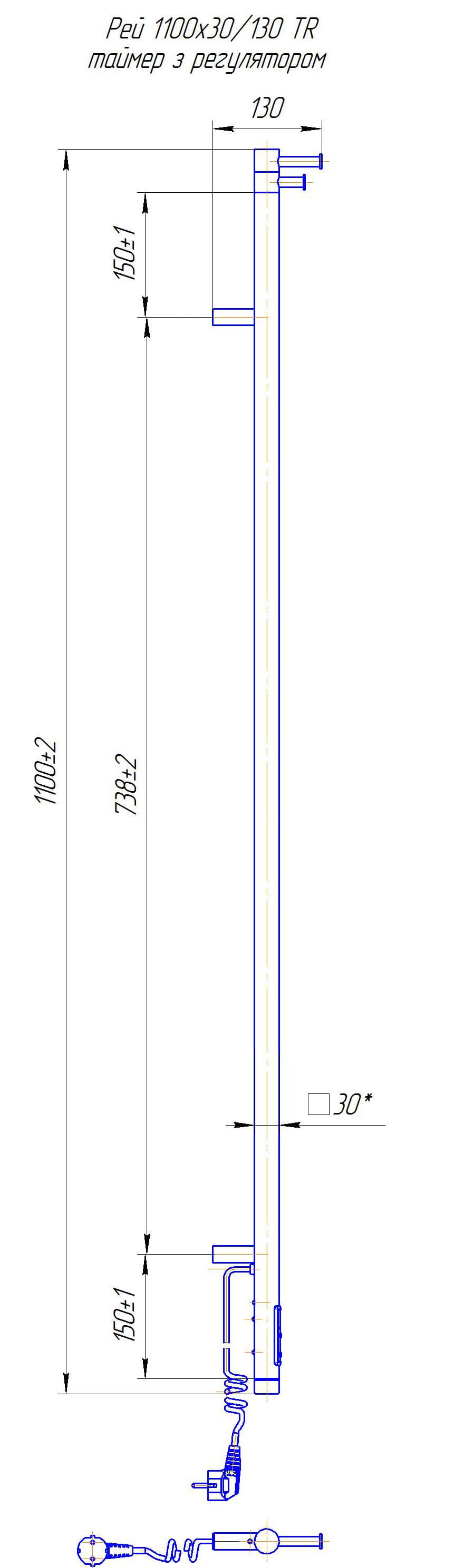 Габарити1100×30×130 мм