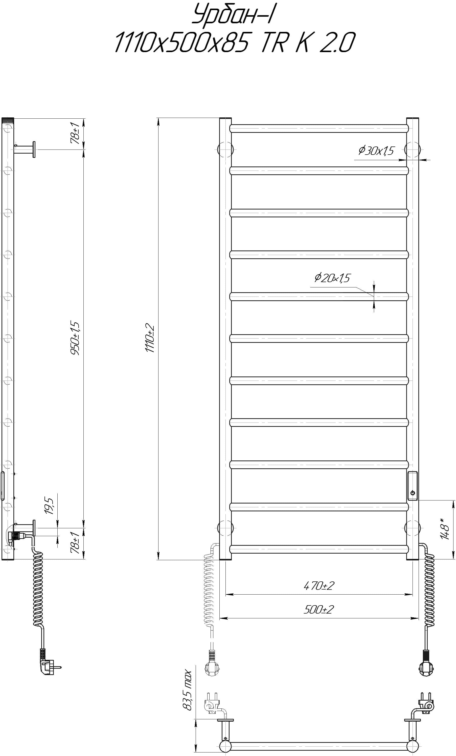 Урбан-I 1110x500/85 TR K 2.0 таймер-регулятор