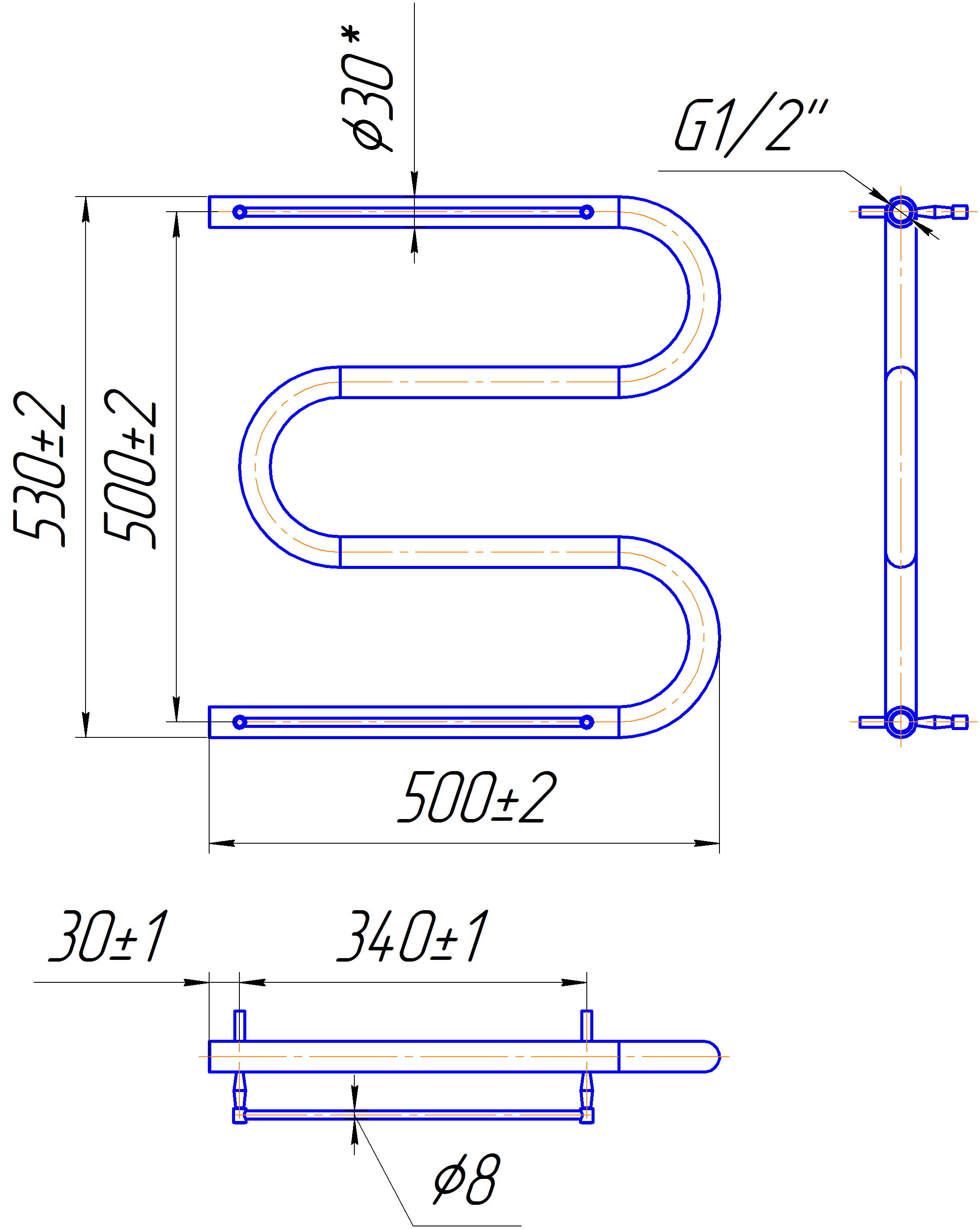 Водяні рушникосушаркиЗмійка ∅30 з полицеюПрочие
